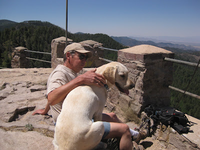 The hike to Barfoot Lookout is an easy one, short and relatively flat, hugging a hill side. Nice views of New Mexico along the way, and the views from the lookout, which is used for fire spotting, are beautiful. It was a bit hazy today, so although we could see all the way across the valley, we could not spot our house. I almost wish I had brought a shirt as it was cool at 8800 feet, and there was a nice breeze blowing. I had almost forgotten what wind in tall trees sounded like: it was impressive.